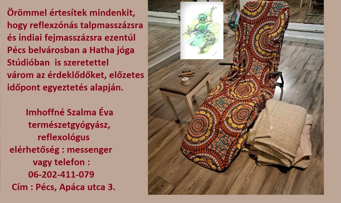 Imhoffné Szalma Éva vagyok, természetgyógyász, reflexológus, intenzív szakápoló, folyamatban levő fitoterapeuta képzéssel.